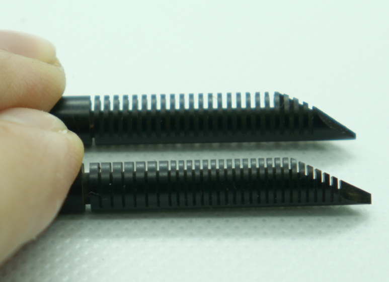 1) internal comb is thicker than external, therfore preventing brekage