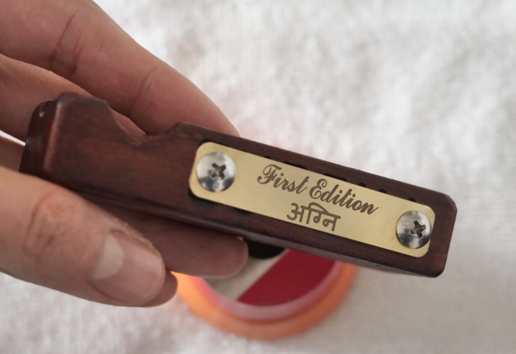 wooden pen rest will be coated with thicker type of urushi (below is just a thin type urushi prototype), with possibly thicker type of brass plate (below just 0.5mm, 1mm+ could be done).