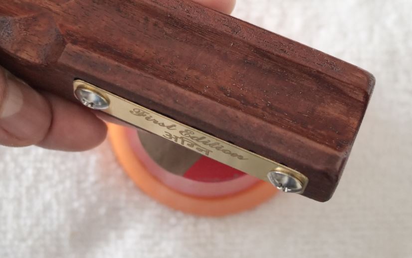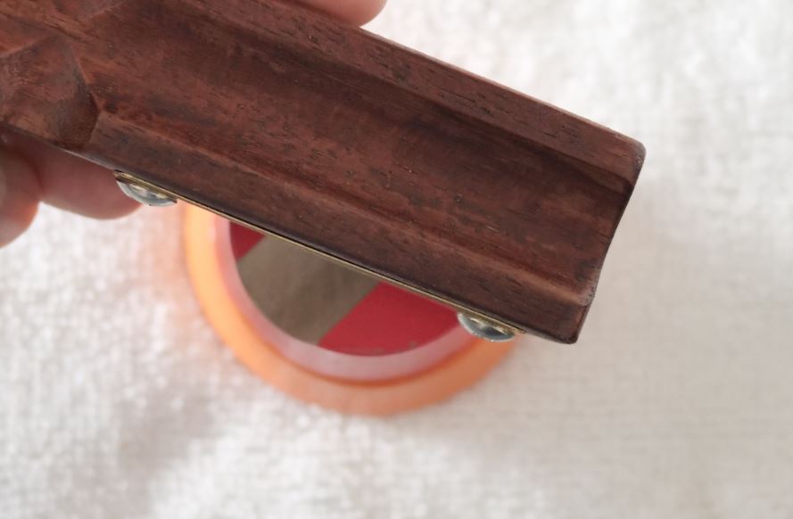 wooden pen rest will be coated with thicker type of urushi (below is just a thin type urushi prototype), with possibly thicker type of brass plate (below just 0.5mm, 1mm+ could be done).