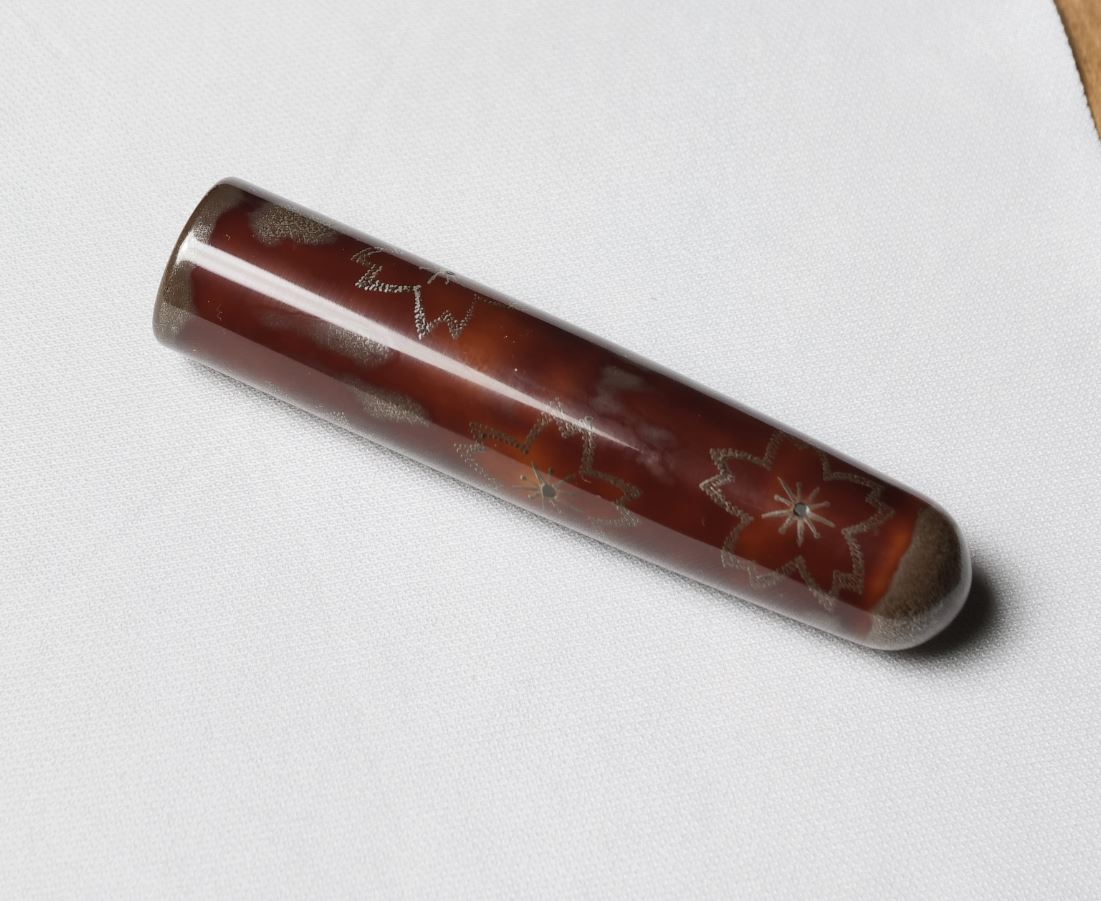 this time i made a cap with yellow tamenuri, with blossom grooves (filled with silver urushi)