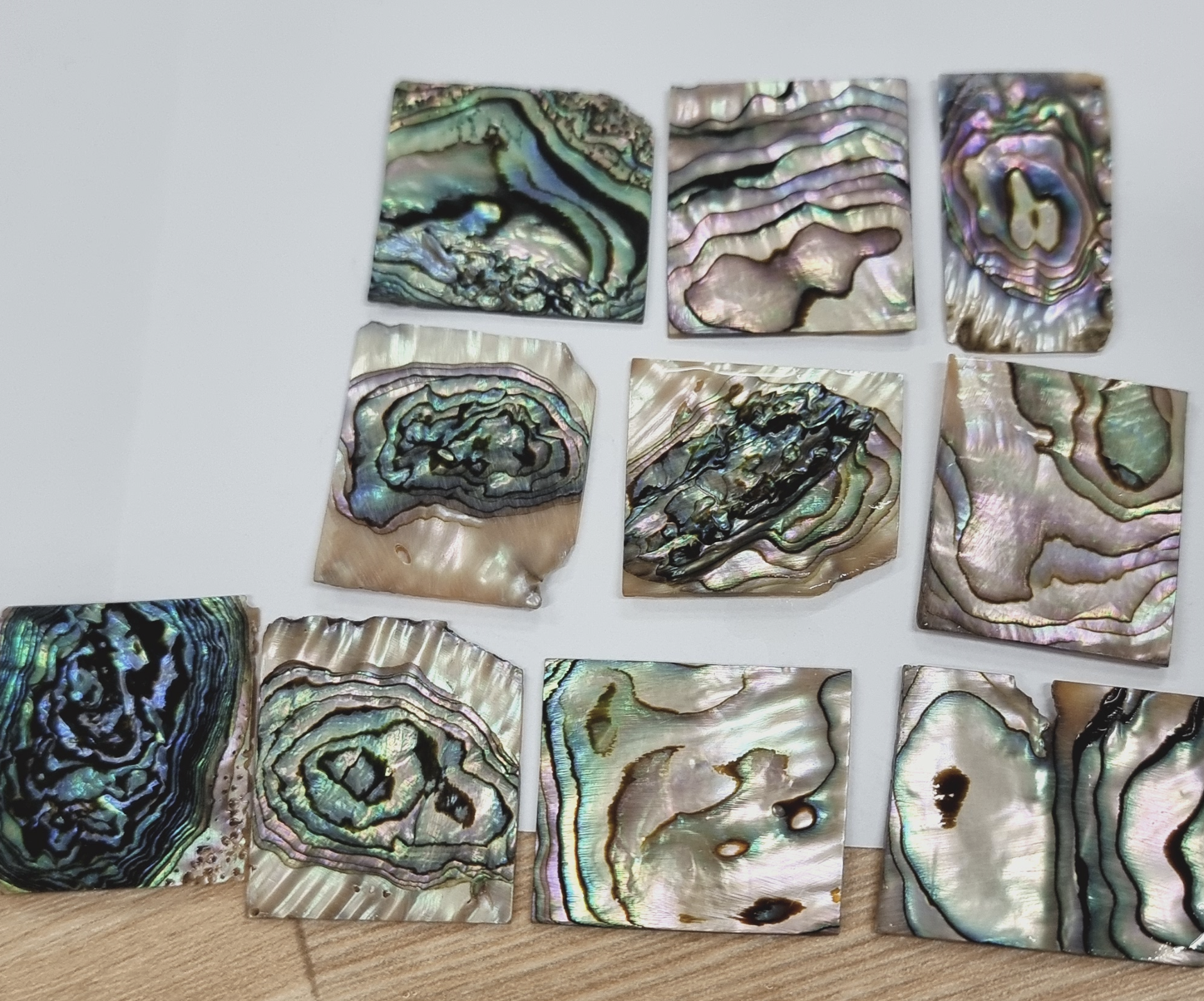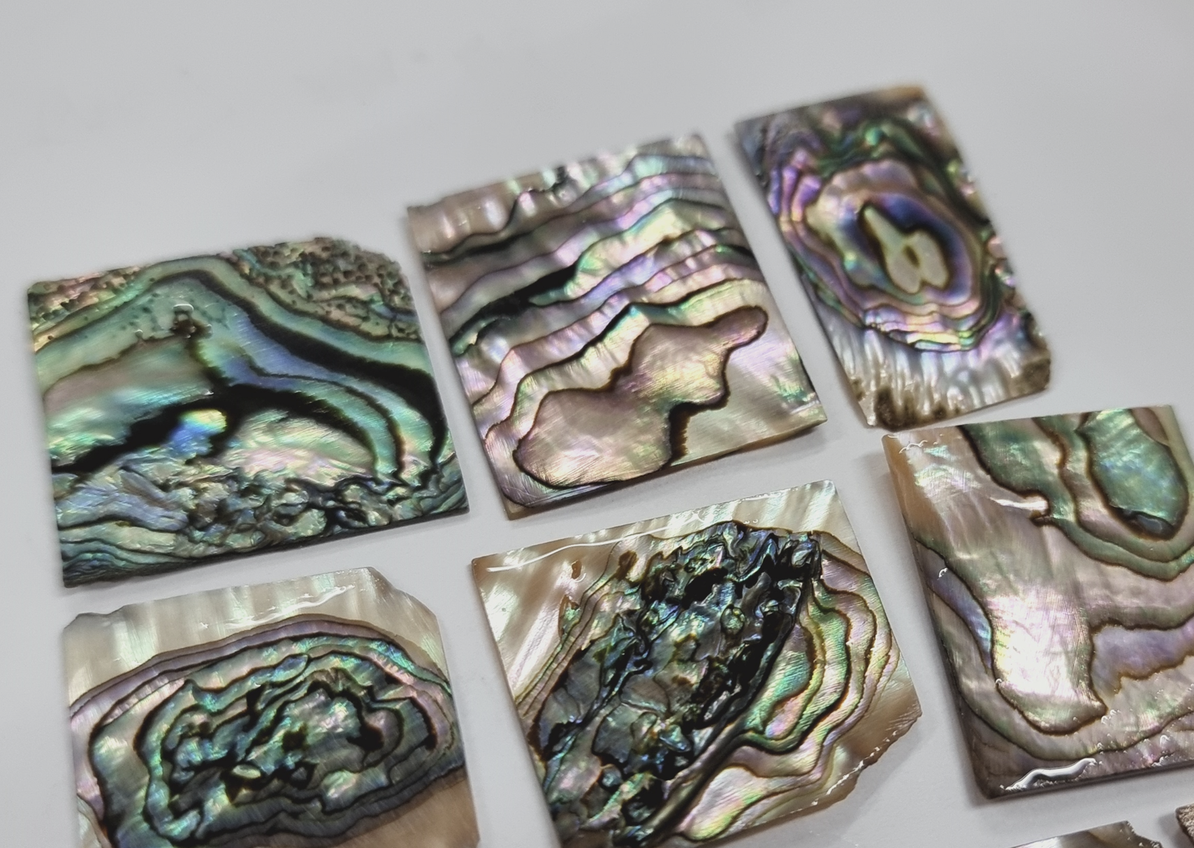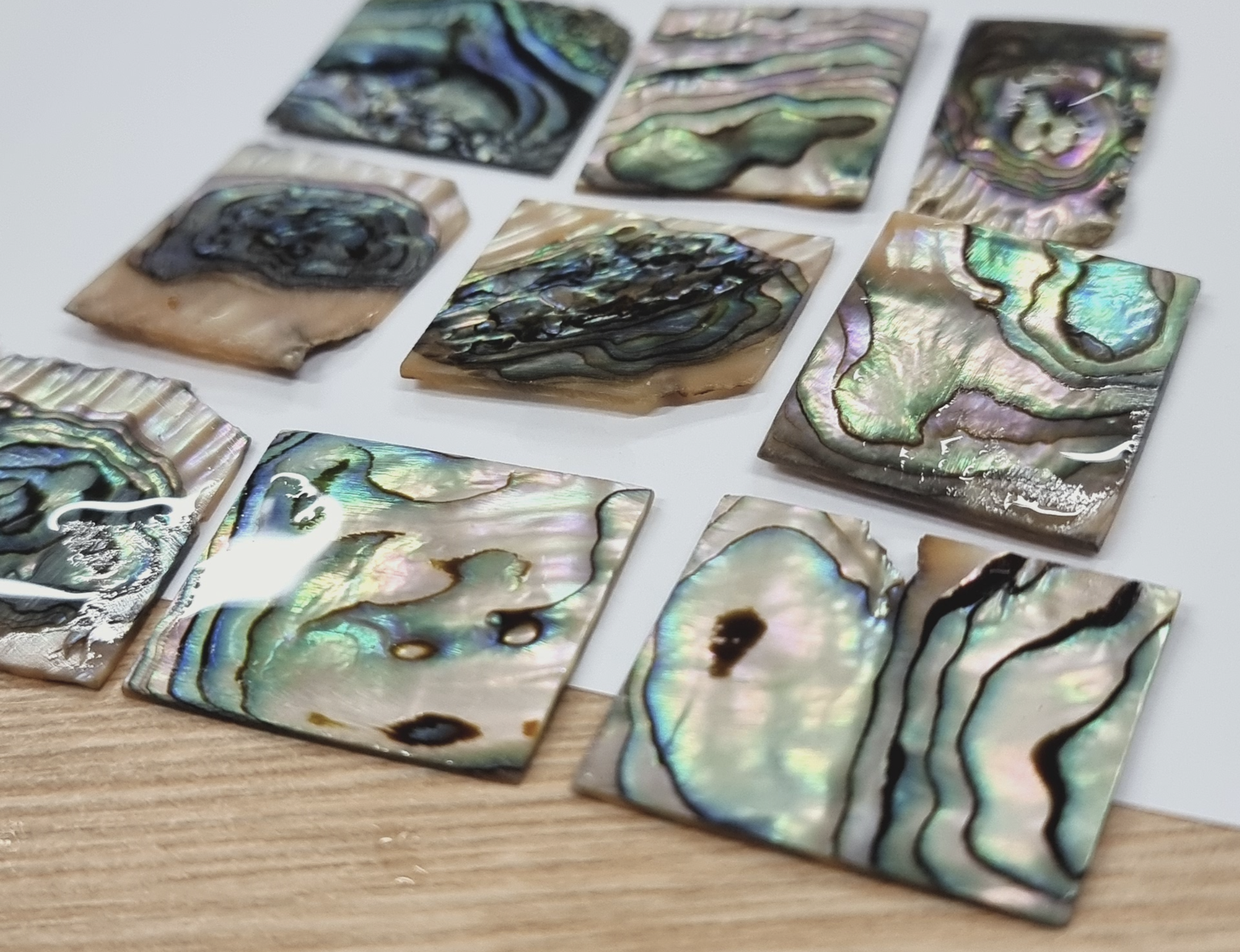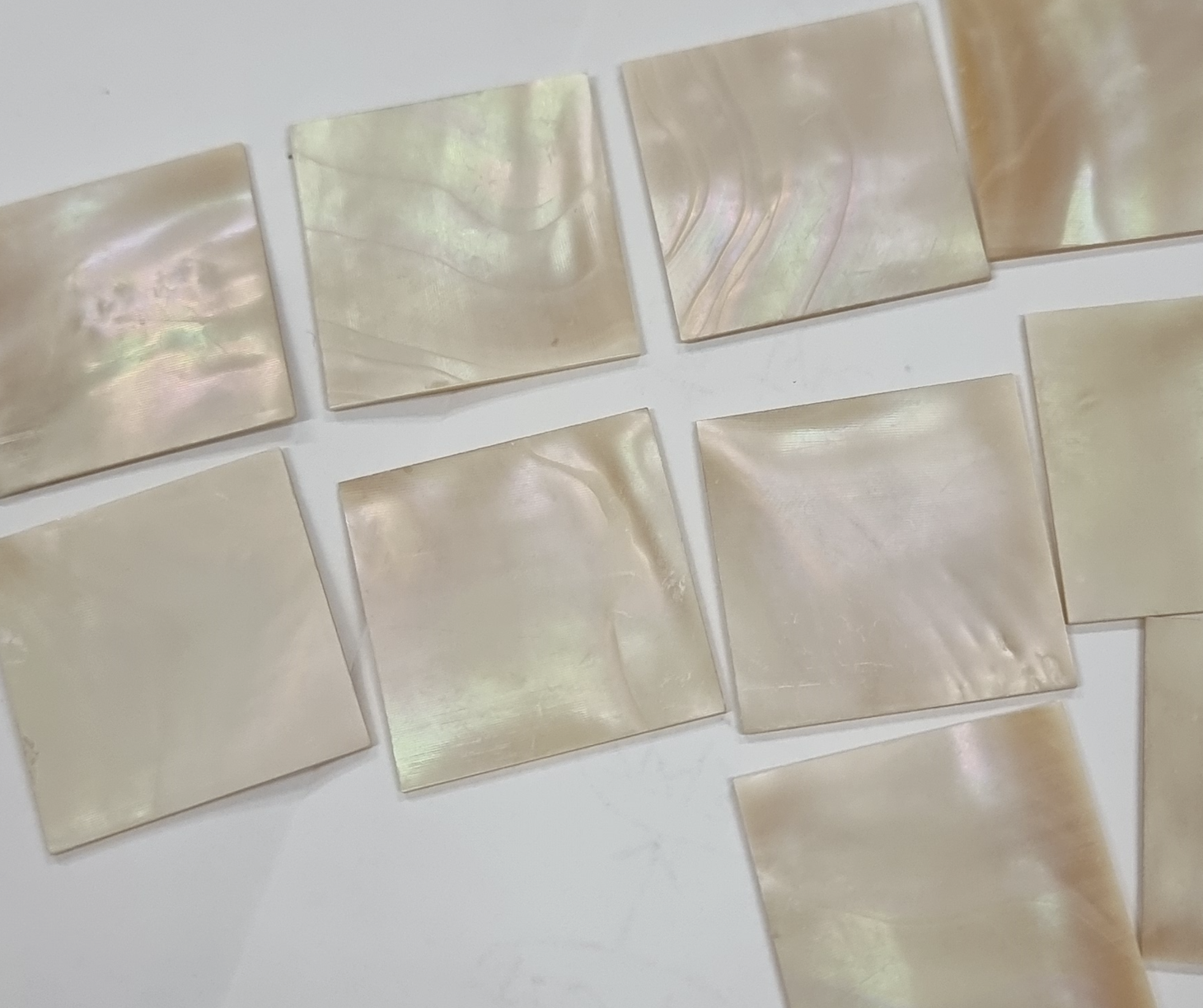 so far i've used black pearl nacre and white pearl nacre (1mm thickness).