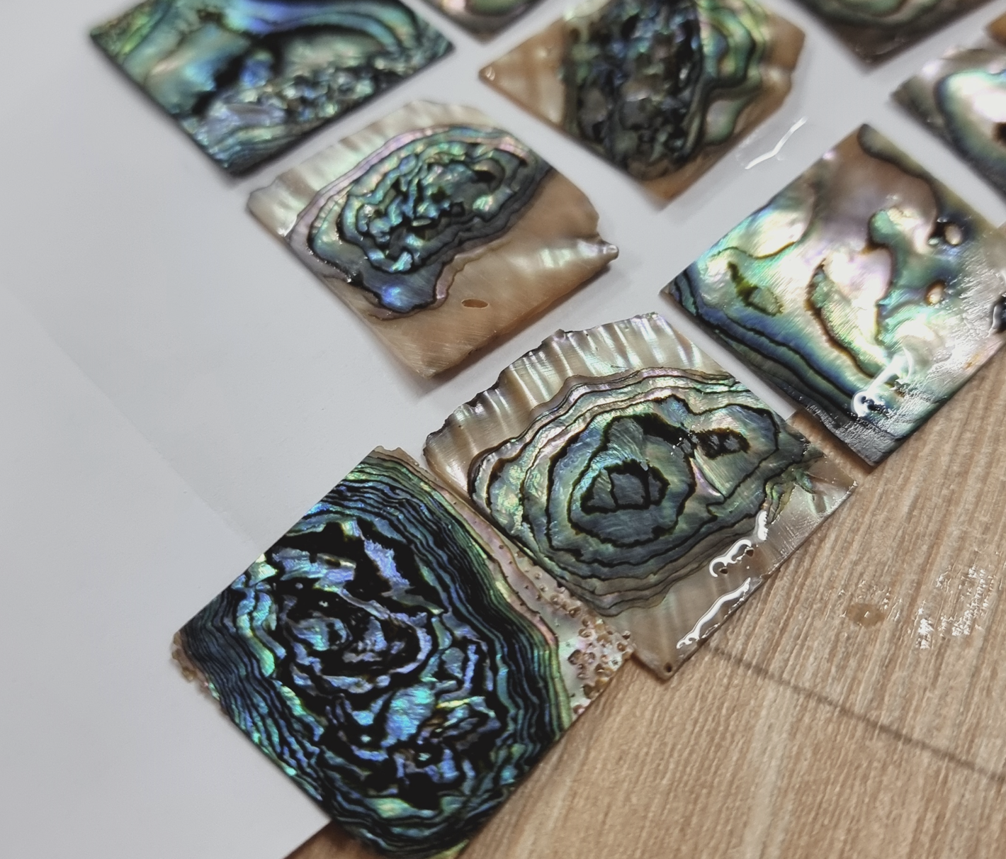 so far i've used black pearl nacre and white pearl nacre (1mm thickness).