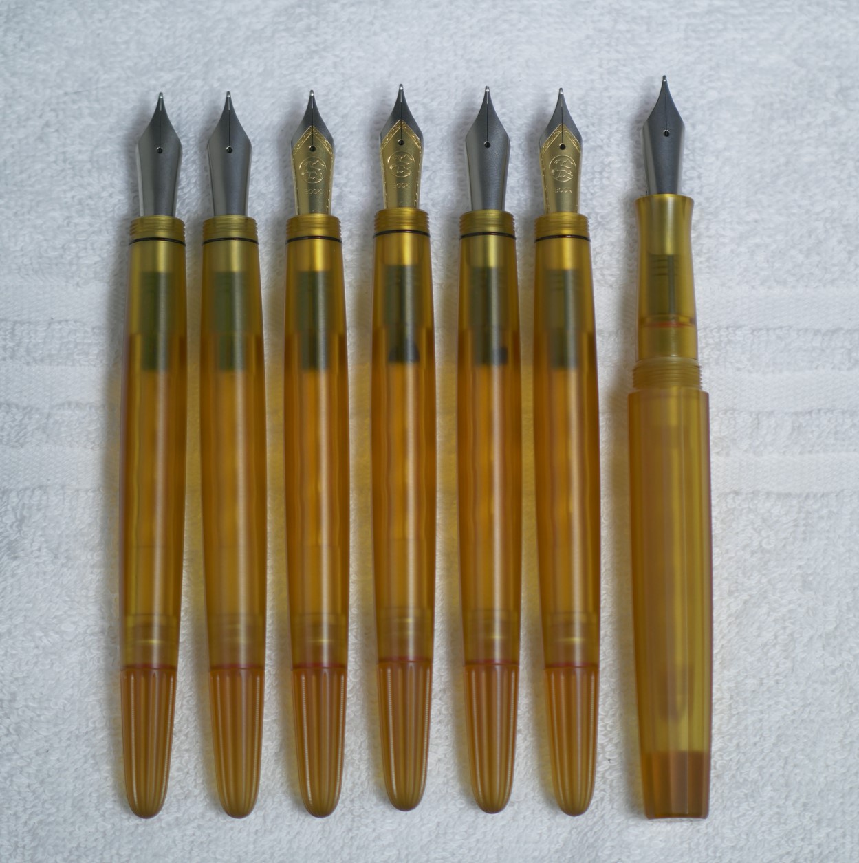 * accurate nib selection from batch, Slit adjustment, tine alignment, point alignment, baby bottom check / reduction, overall nib smoothing, scratch reduction, feed heat setting, micro-hammering applied