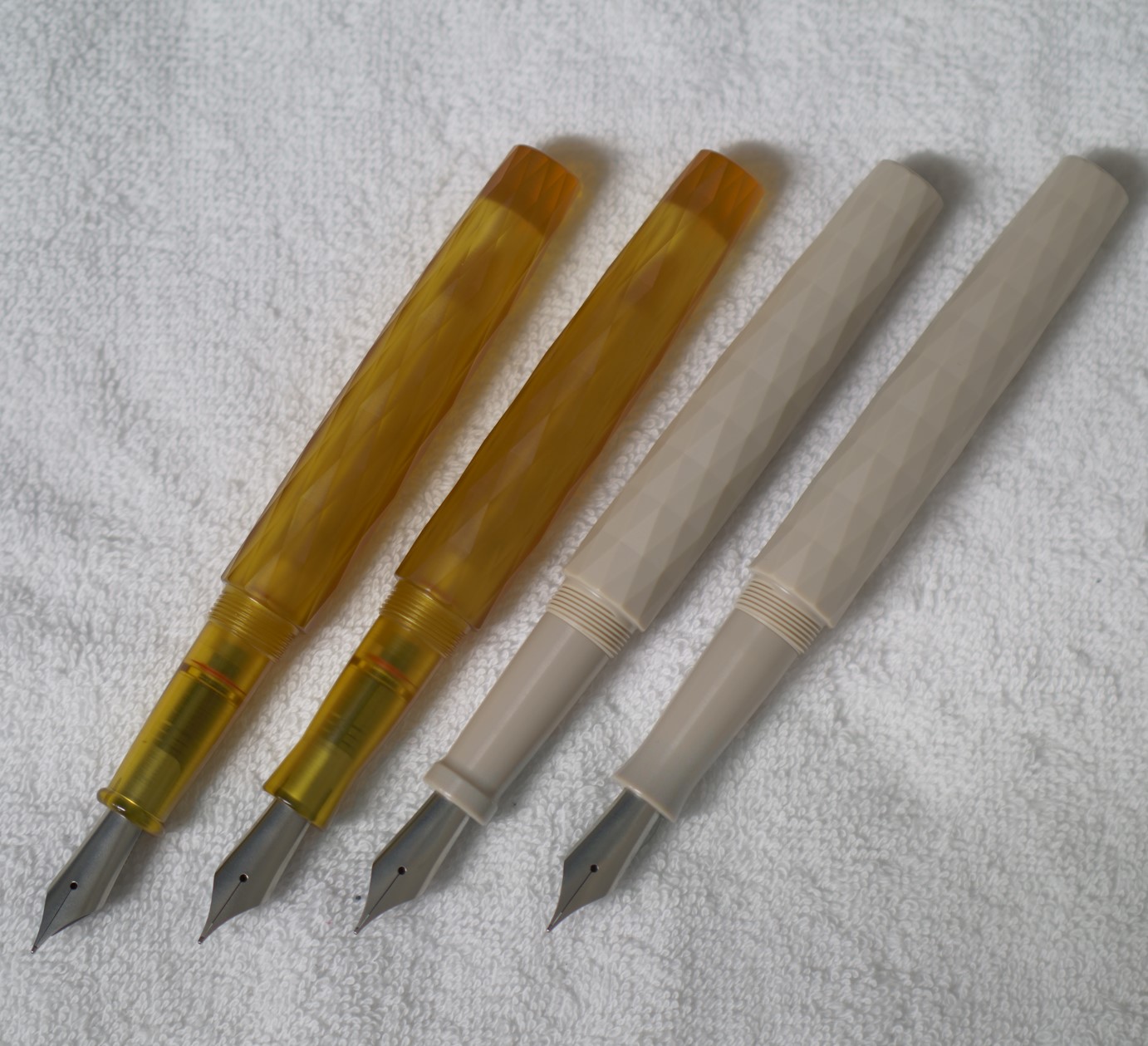1. Unless specifically specified, usually fountain pens are made from general plastics (or "Resin") such as ABS, Acrylic ( = PMMA / Plexiglass), etc.